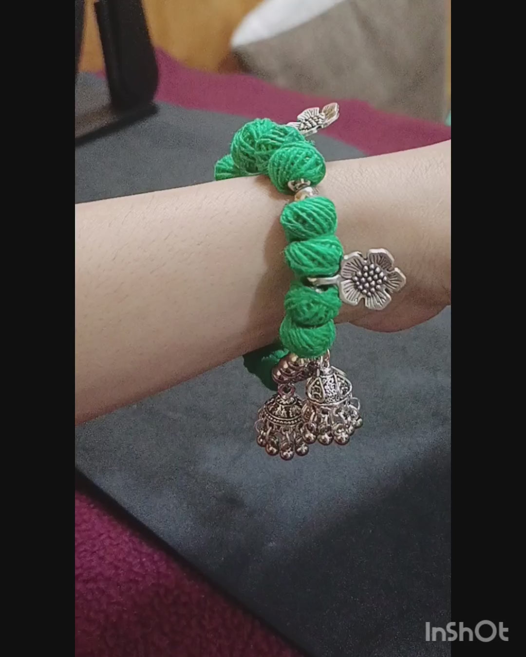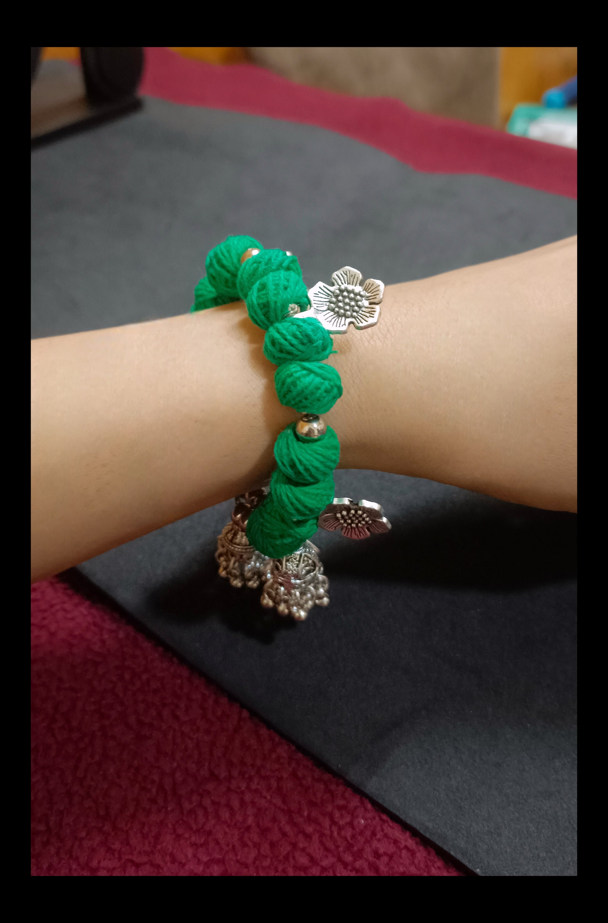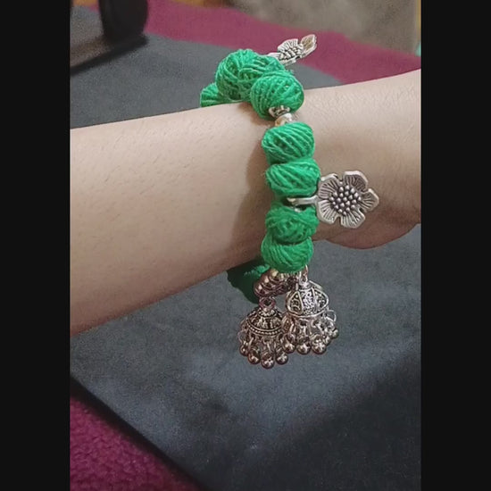 Adjustable Cotton Beads with Oxidised Charms Bracelet (Green Color)