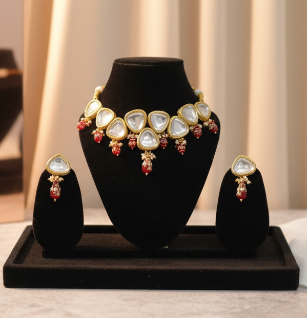 Quality- Pure Meenakari Kundan & Off-White loreal & Maroon Beads