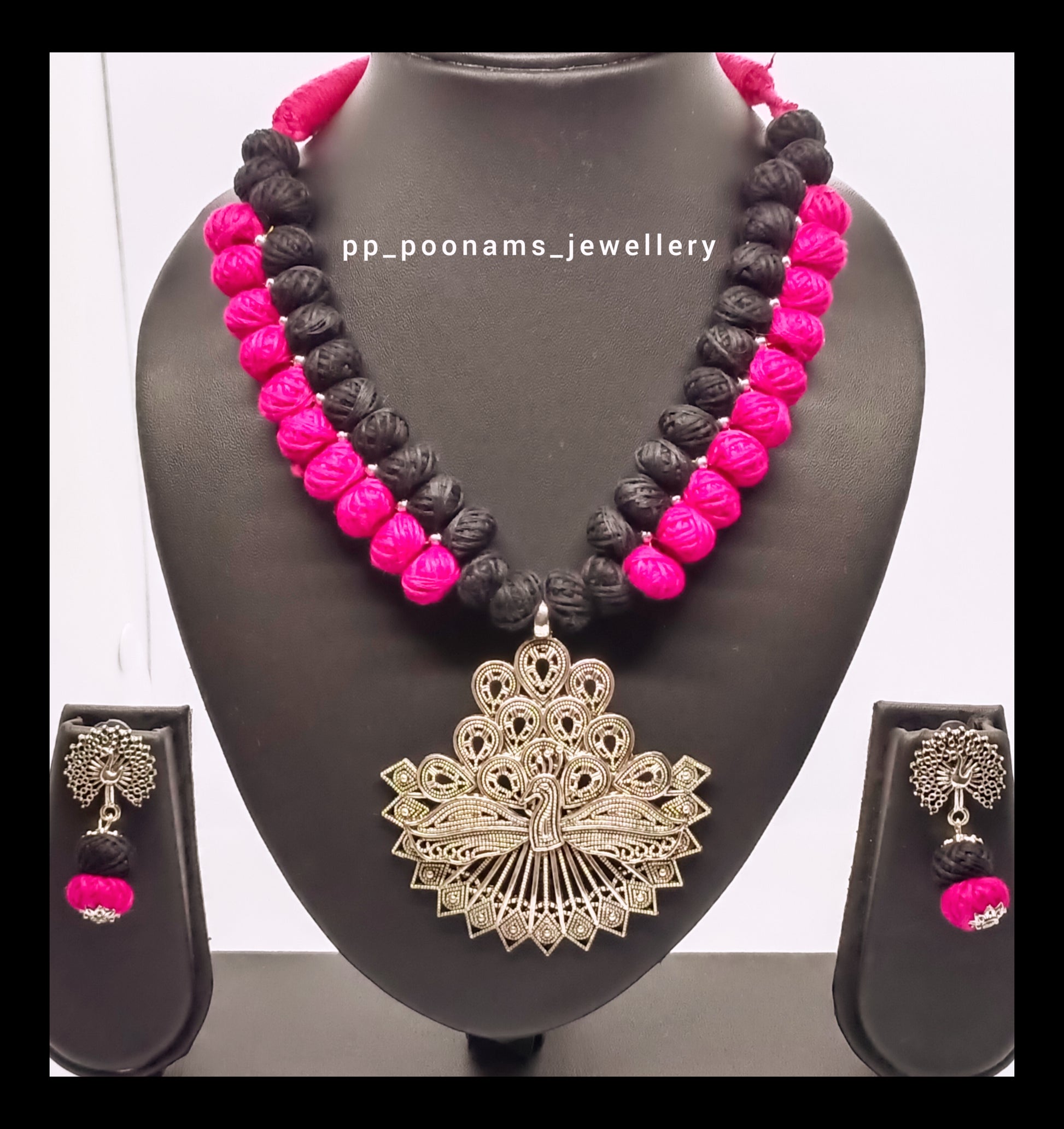 Beautiful Oxidised Silver Plated & Cotton Beads adjustable Necklace Set
