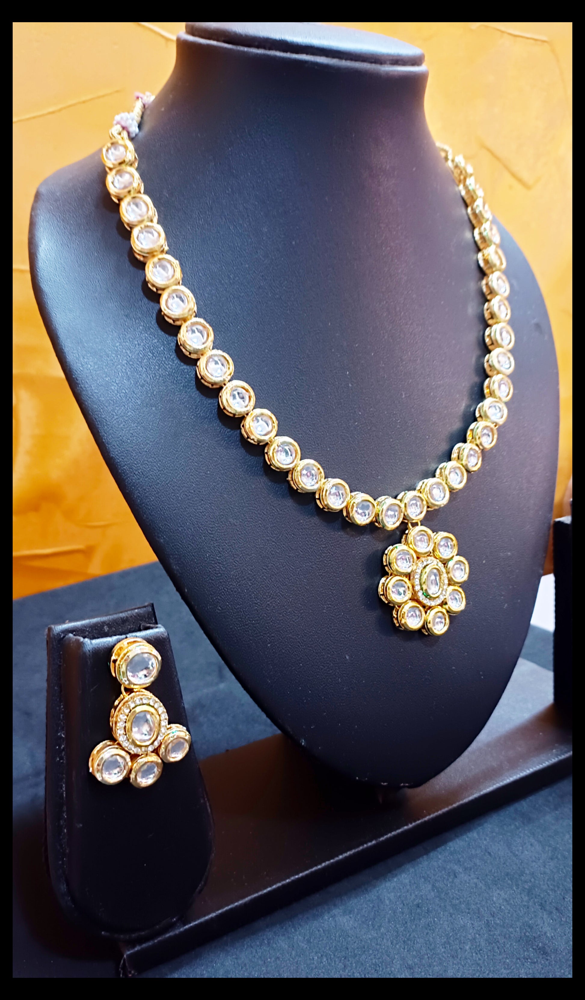 Single Line Gold-Plated Meenakari Kundan Necklace with Kundan Pendant Set
